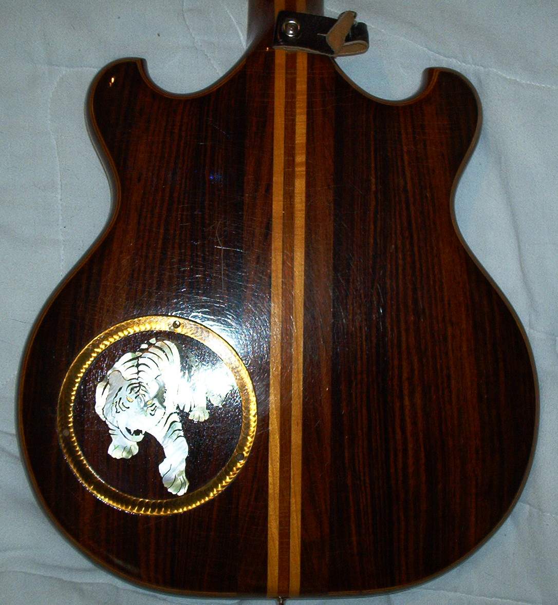When “Rosewood” was shown to Jerry, his favorite feature on the instrument was the tiger inlaid into its electronics cover plate. We noticed his clear obsession; touching it and returning his gaze time and time again. This was the singular reason for Doug incorporating a tiger into the ornamental design scheme for Jerry’s new custom guitar. Though this time its designate was front and center, not on a back plate. A few weeks after our meeting with Jerry, we drove down to his house in San Rafael. This was the first and only time I met Mountain Girl. She greeted us with a $2000.00 cash deposit toward the instrument’s $4000.00 total (at the time), then handed us a stick of Sinsemilla and said, “Jerry wanted you to have this.”