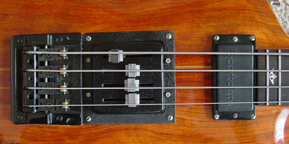 Custom bass guitar designed for John Entwistle. This Bubinga beauty employs neck through Alembic-style construction. Also the first bass to utilize the EQ-4 sliding pole piece pick up.
