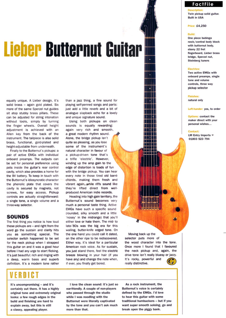 Read the full Butternut U.K. Guitar Magazine review. Page 1. Page 2.